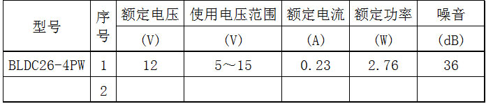 通用規(guī)格 材質(zhì) 底座:塑料(黑色)UL94V-0 扇葉:塑料(黑色)UL94V-0 軸承:含油軸承(采用專(zhuān)利自鎖油循環(huán)系統(tǒng)保證軸與軸承長(zhǎng)期潤(rùn)滑運(yùn)轉(zhuǎn),避免缺油) 油:P2A090(普瑪威克) 導(dǎo)線:UL1007 22AWG、24AWG+,紅;-,黑 連接器:可根據(jù)用戶需要定制